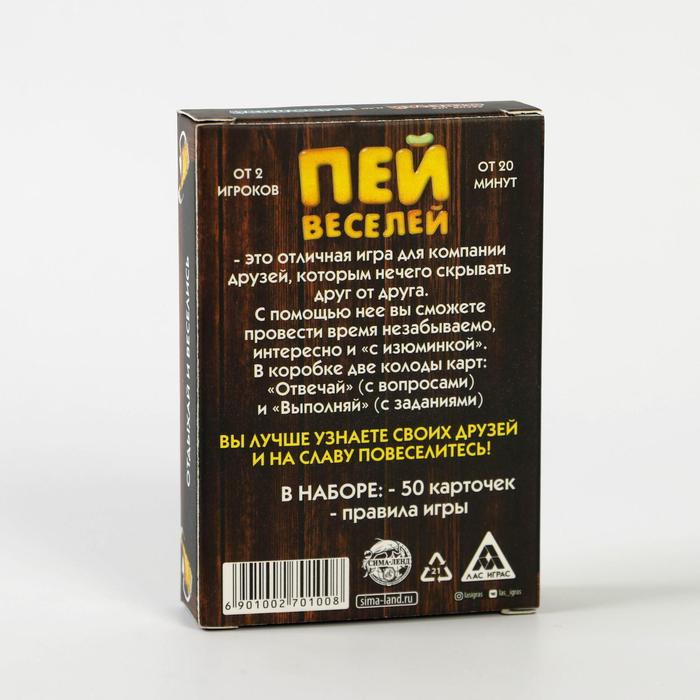 Купить игра для компании "пей веселей" 50 карт от 180 руб. с доставкой до пункта выдачи в Пензе. Интернет магазин ДекаМаркет. Оплата при получении.